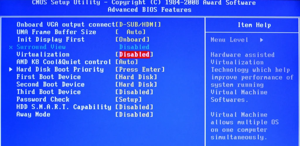 — 3. Аппаратная виртуализация включена в BIOS/UEFI (Intel VT-x / AMD-V).