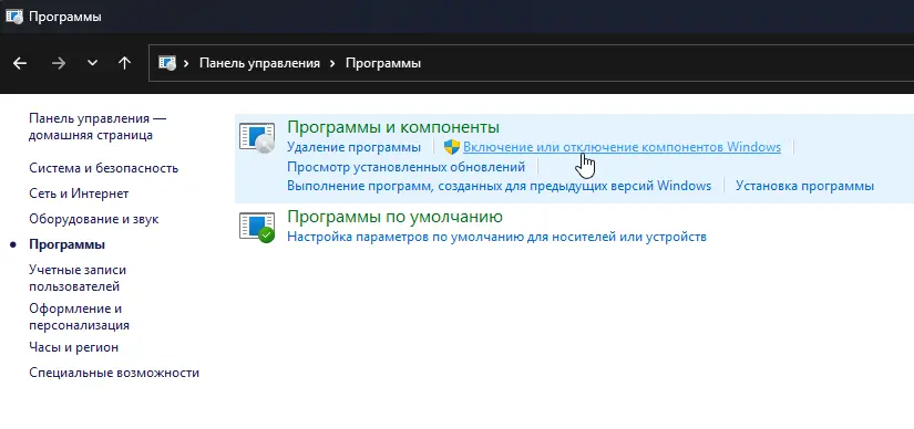 — Откройте «Turn Windows features on or off» (Панель управления → Программы → Включение или отключение компонентов Windows).