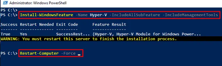 Install-WindowsFeature -Name Hyper-V -IncludeManagementTools
