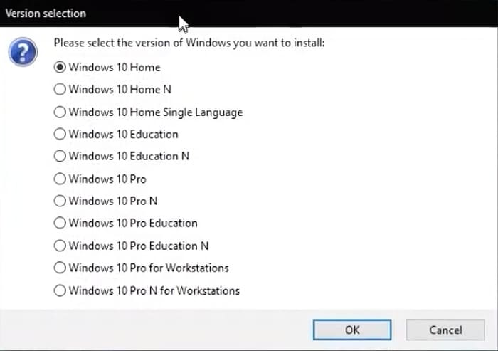 The next step is to select the OS version. Typically, system images for installation offer several versions of Windows, such as Pro, Home, etc. Choose the one you need. In our case, let’s select Windows 10 Home.