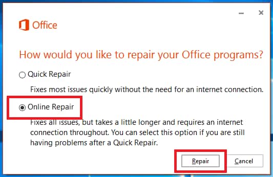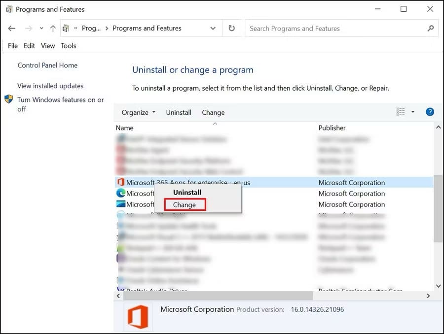 1) Through the «Repair» option of the Microsoft Office suite. Make sure to perform the repair through the «Apps & features» menu, not through the «Control Panel», as this method may not work otherwise. Right-click on the «Start» menu => Apps and features => find Microsoft Office there => Change => Online Repair.